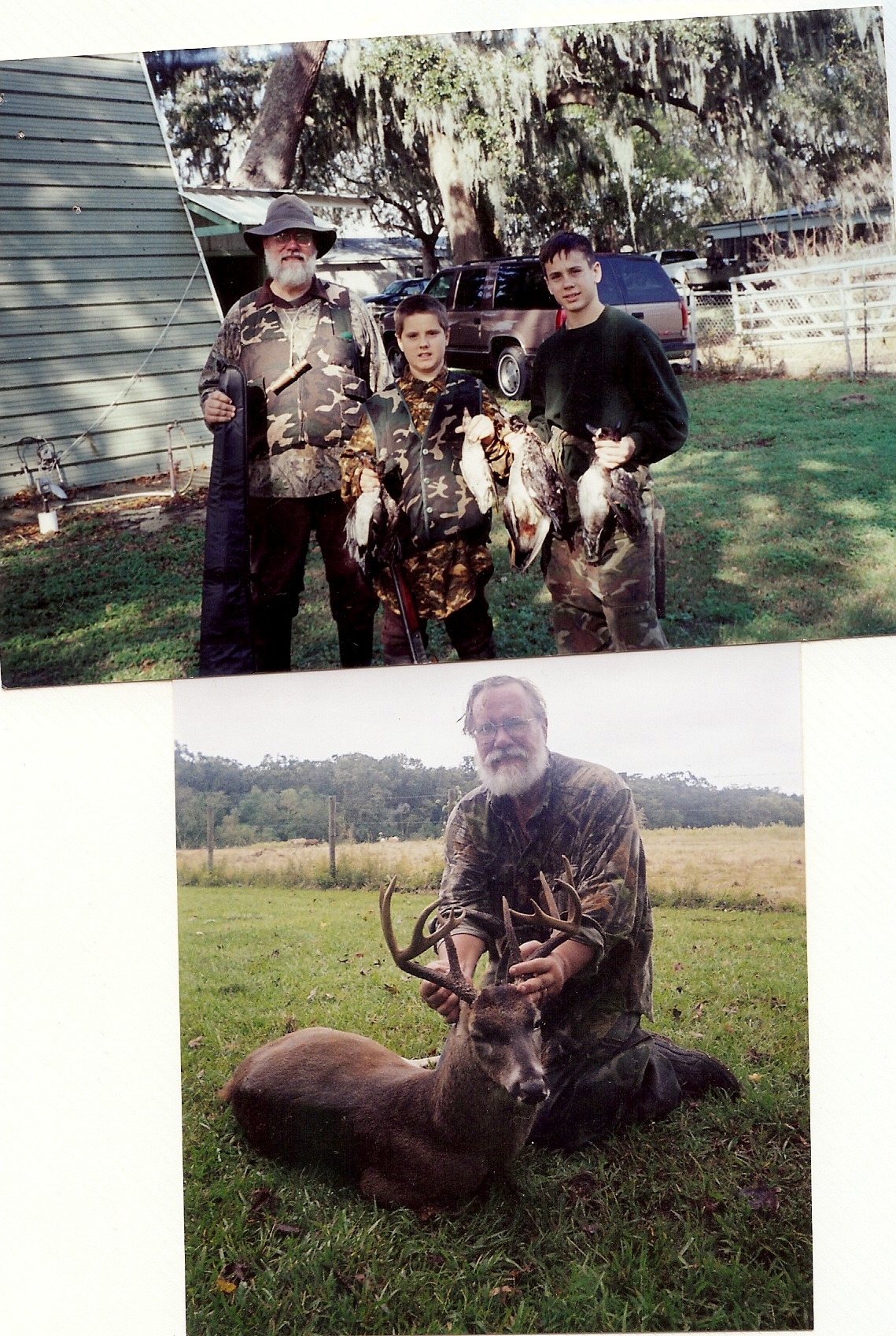 Hunting: Top- father & 2 brothers with ducks Bottom- Dad & deer